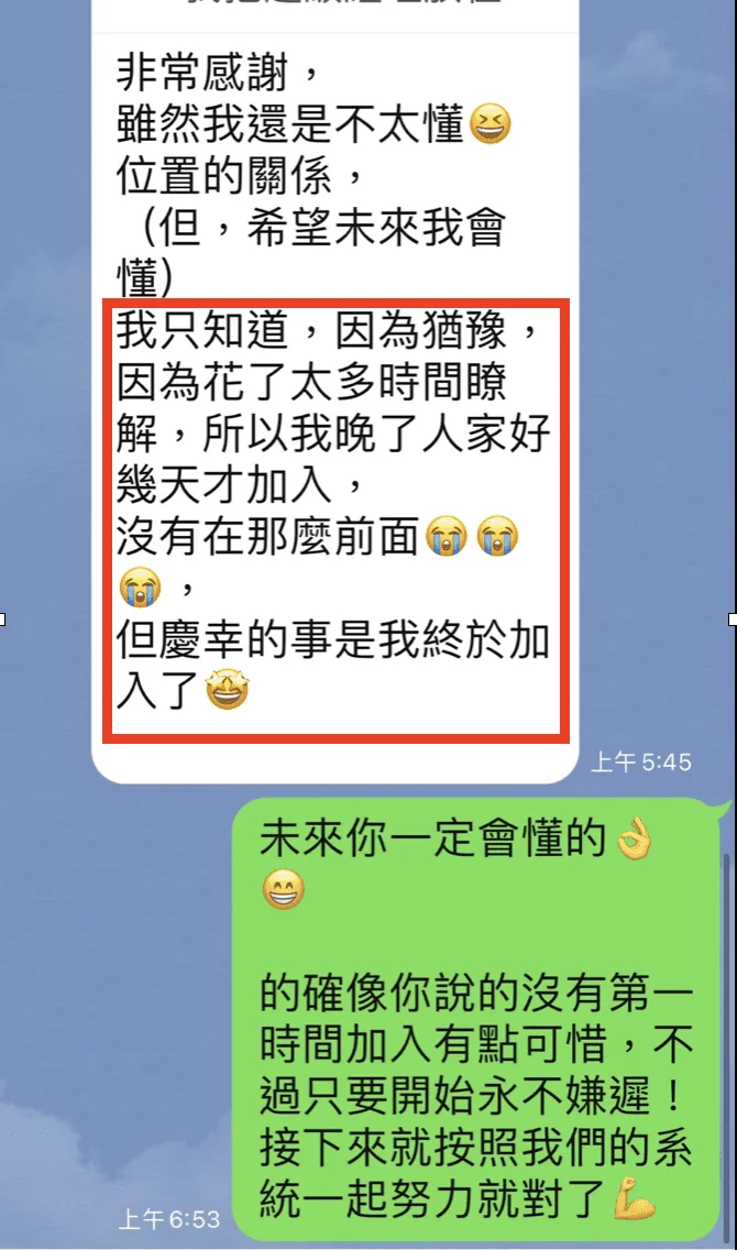 多方了解資訊後加入,可見是經過深思熟慮,非一時衝動!