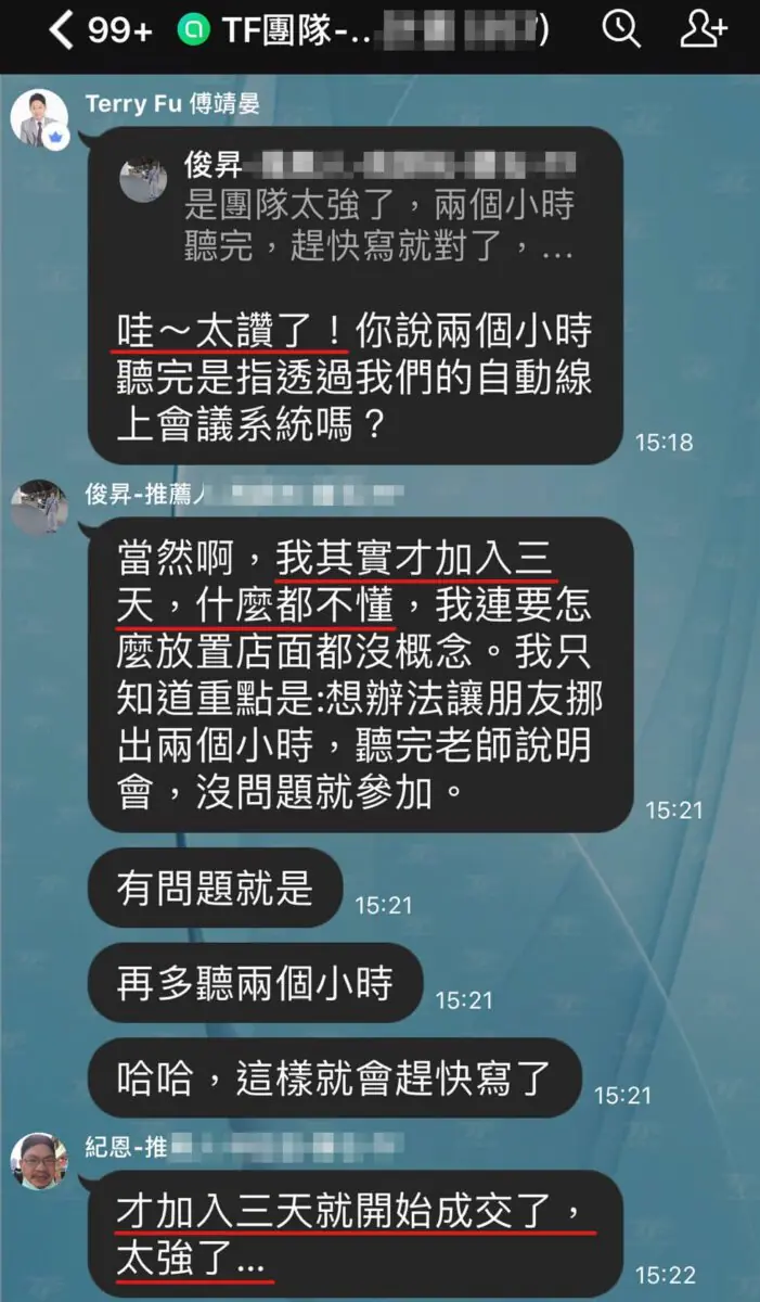老師經常線上講課,學習過老師的課程系統的人,很多人熱情回饋,他們透過網路賺錢,增加很多收入,改善了經濟狀況。財務更自由,家庭更幸福。